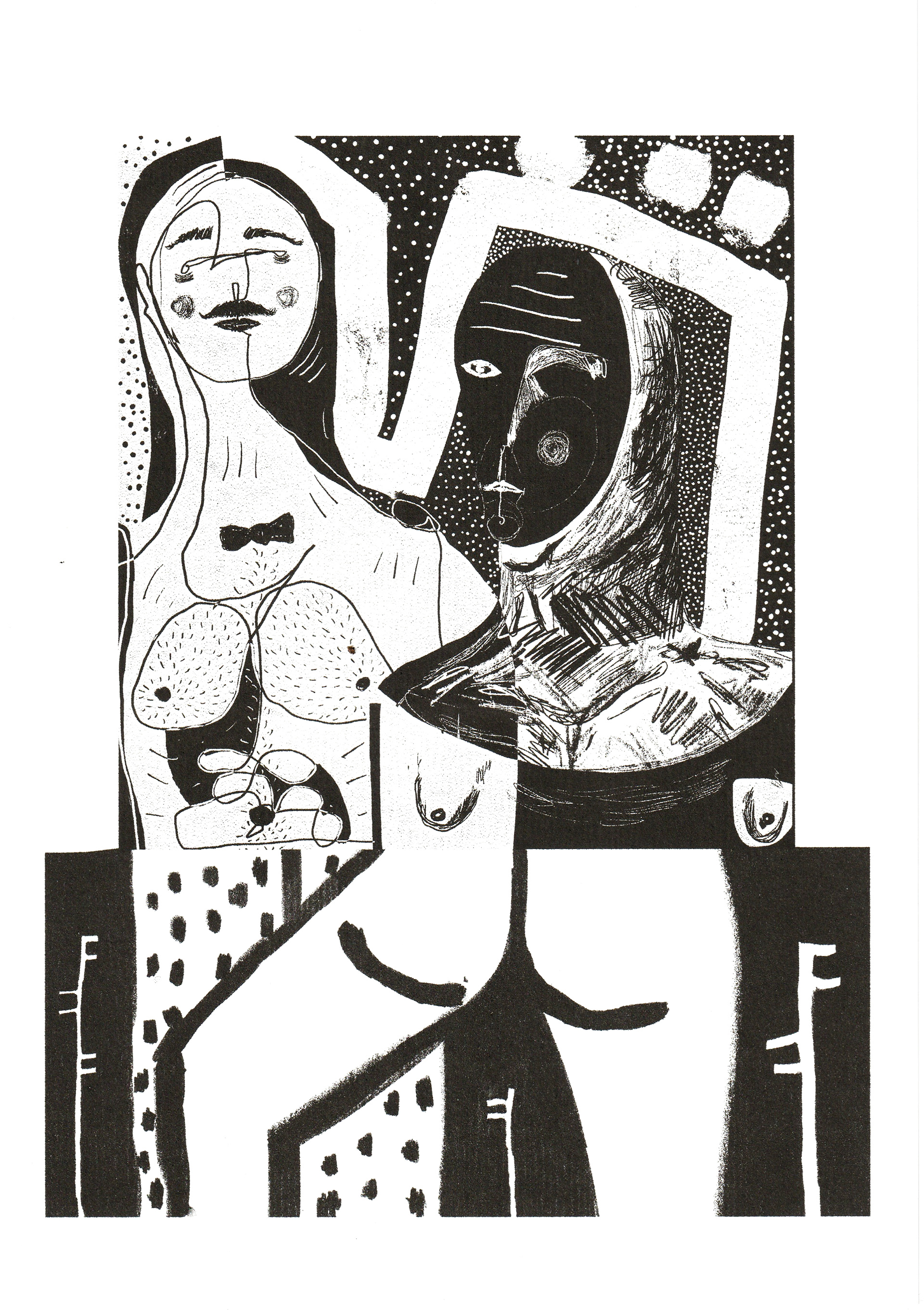 the human body is depicted in a fragmented, distorted and imperfect manner. Even when presented in company, it makes his characters distant and alienated as they lack the basic abilities to reach out for intimacy and warmth